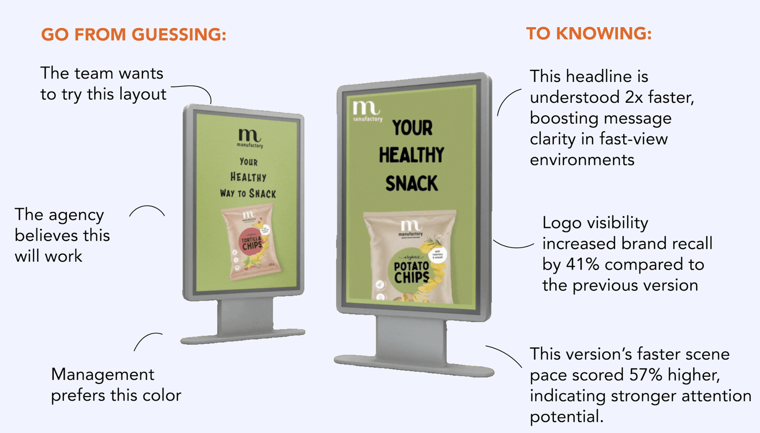 Schwachstellen in Botschaft, Design oder Branding werden frühzeitig erkannt – noch vor Produktionsbeginn.