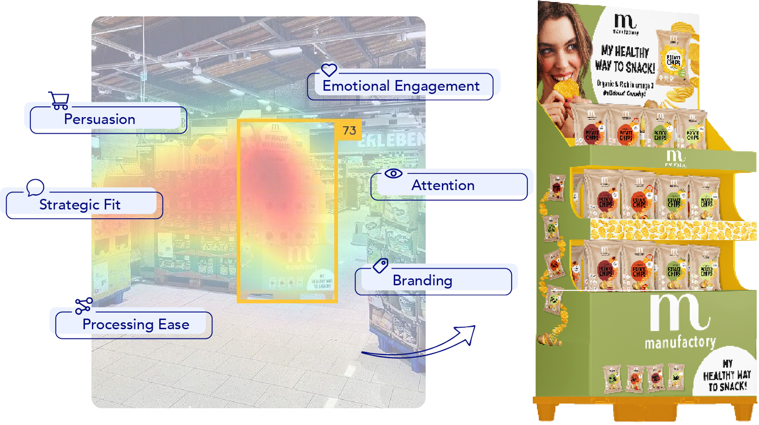 Brainsuite’s Shopper App leverages neuroscience insights about what drives effectiveness at the point of sale and uses AI to predict how your assets perform against these key drivers: Attention, Branding, Processing Ease, Strategic Fit, Emotional Engagement, and Persuasion.